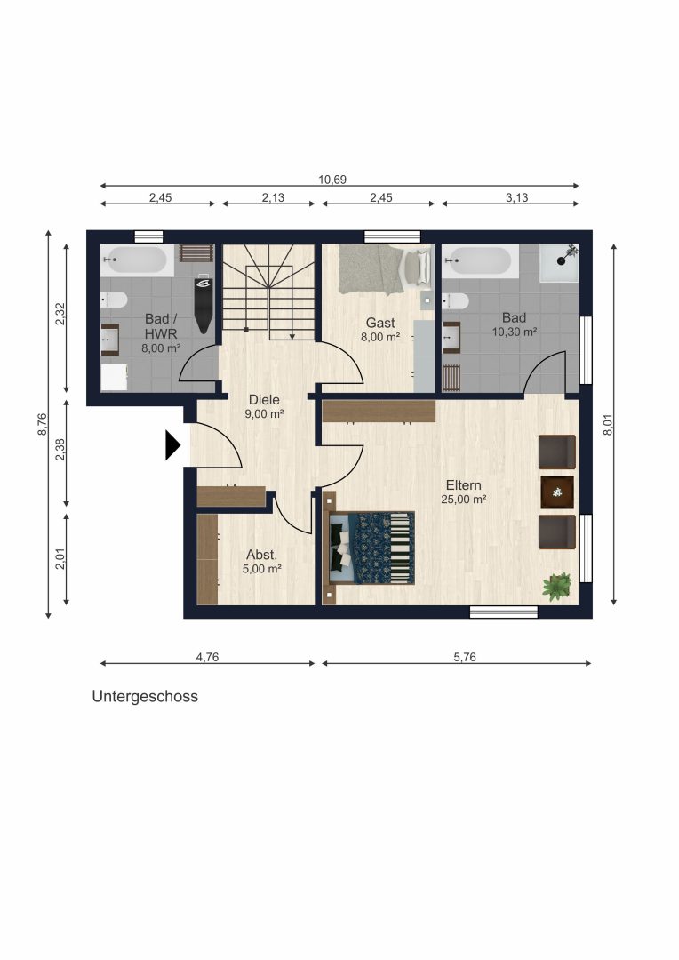Auf insgesamt 184,46 Quadratmetern Wohnfläche präsentiert sich ein großzügiges Zuhause, das Komfort, Weitblick und ein einzigartiges Wohngefühl miteinander verbindet. Die Raumaufteilung umfasst im Erdgeschoss zwei helle Zimmer, ein modernes Bad, einen eigenen Saunaraum, einen Windfang und einen praktischen Kellerraum.