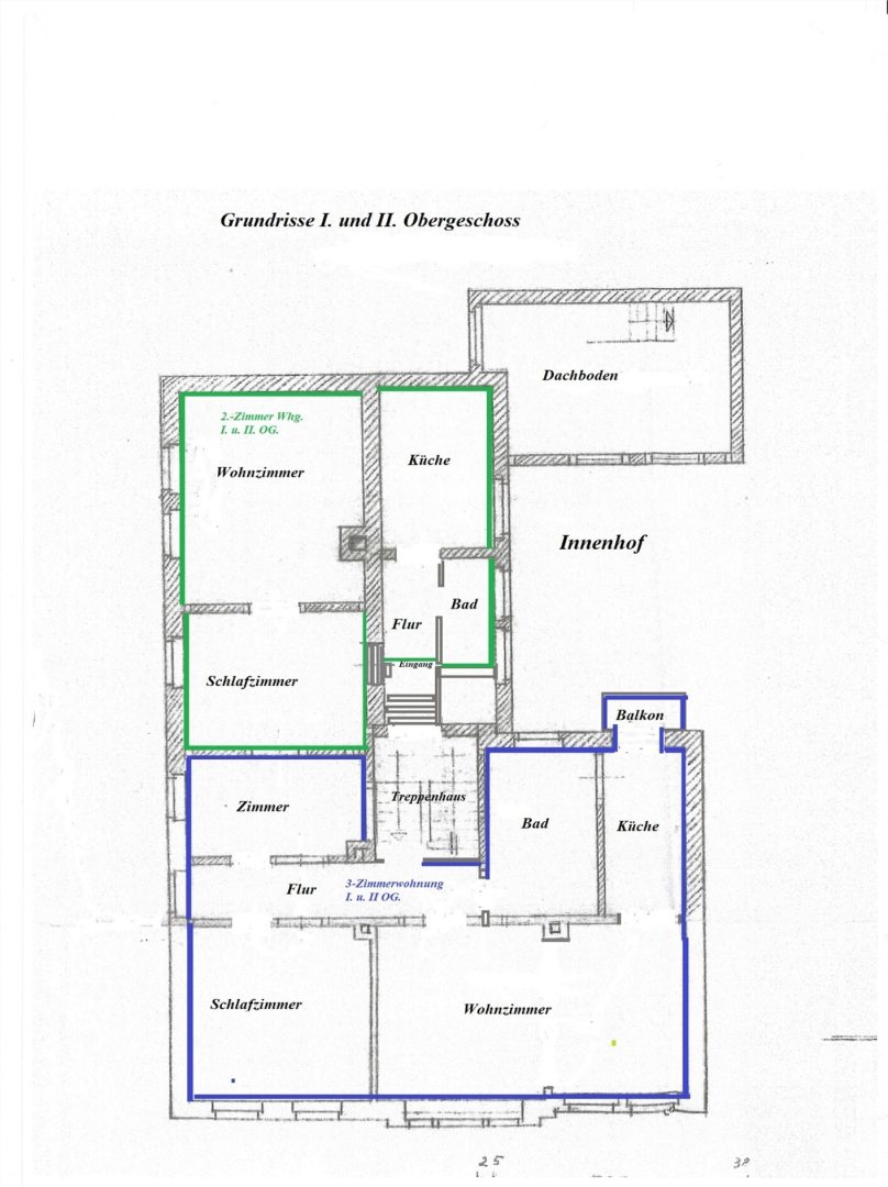 2. Obergeschoss rechts: 78,00 m² – 3-Zimmer-Wohnung